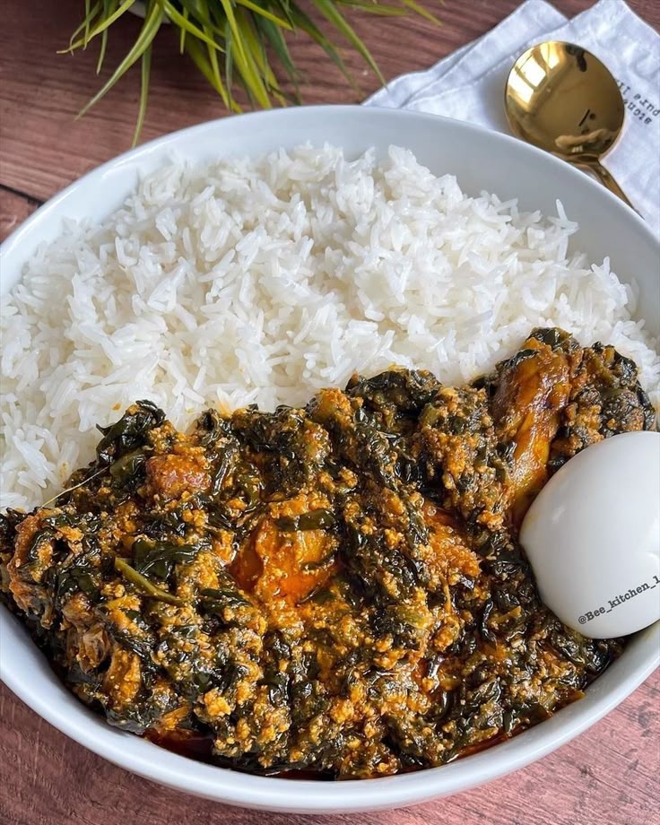 Nkotomire Stew With Boiled Rice